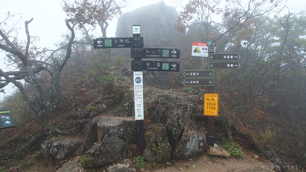 주 능선 안내판에는 모두 최종 코스만 적어 두었는데 중간에 있는 갈림길 코스도 같이 붙여놔야 될 것 같네요.