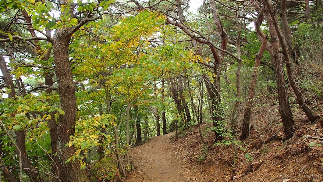 이곳 능선은 참 걷기도 좋고 힐링 숲길이라 멋진 곳인데 오늘은 동양화 비슷한 그림만 보고 걷습니다.
