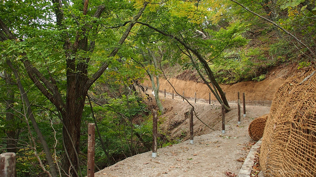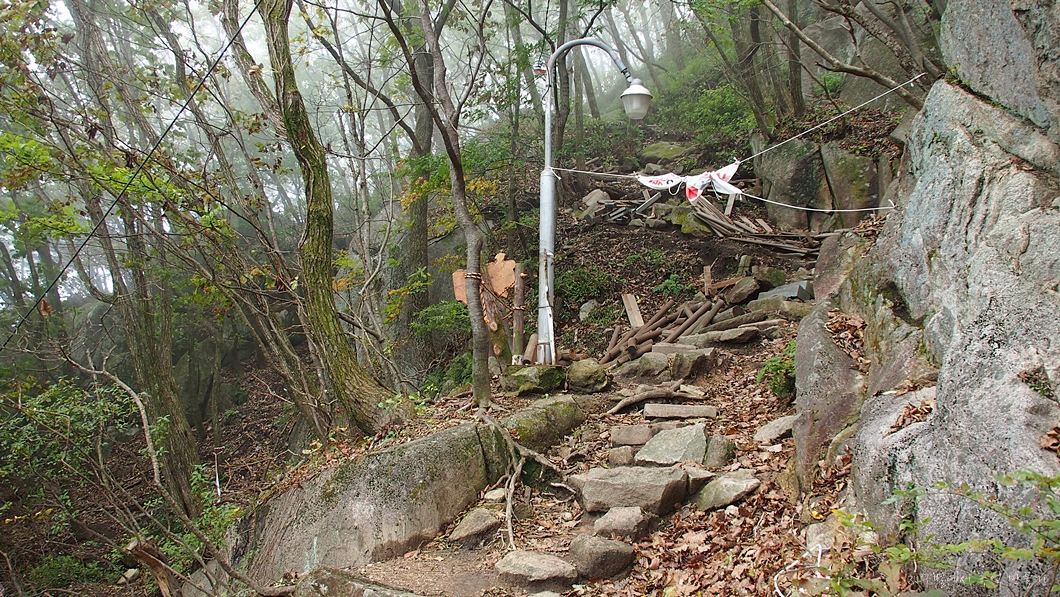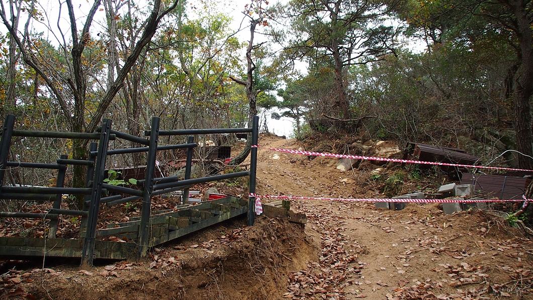 계단을 거의 다 만들어 놨는데 금줄을 쳐 놓아서 그곳으로 오르지 않고 생비탈을 오르려니 2보 전진 1보 후퇴가 되네요.