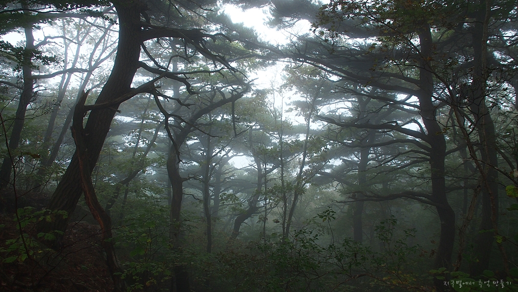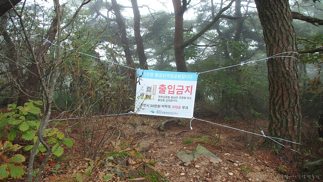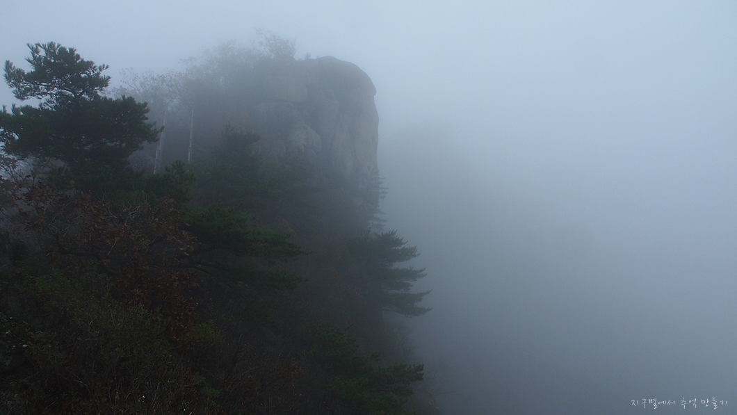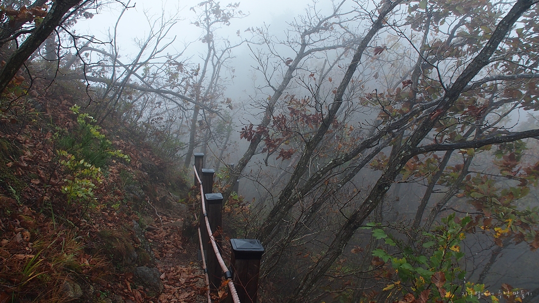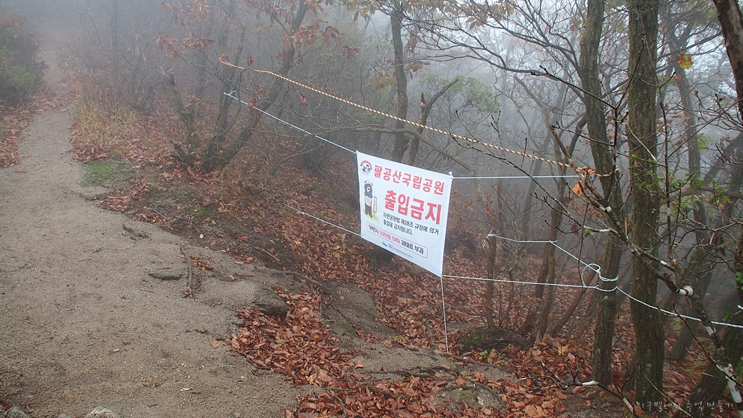 팔공산으로 찾아갈때만하여도 날씨가 흐리기는 하여도 비는 오지 않았는데 산행을 시작하니 부슬비가 슬금슬금 내리는데그나마 조금 트여있던 능선의 풍경도 모조리 갇혀서 미로속을 거닐고 왔답니다.
