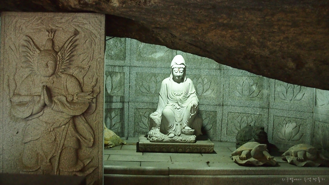 석굴에는 관세음보살 같은데 자세가 특이합니다.