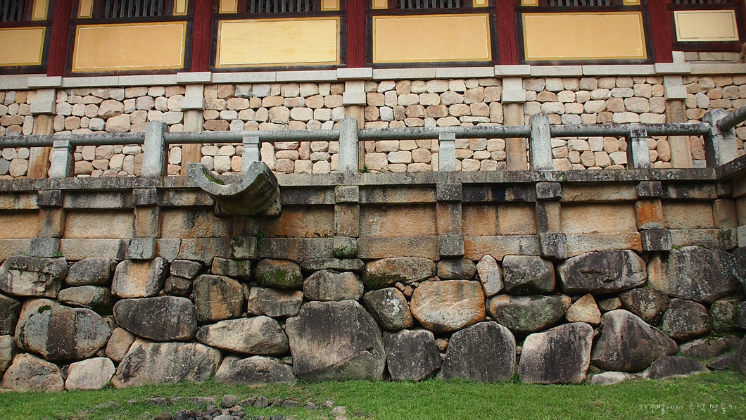 앞쪽으로 보이는 돌계단이 극락세계로 들어가는 문인 안양문으로 올라가는 곳인데 국보로 지정이 된 연화교 칠보교입니다.