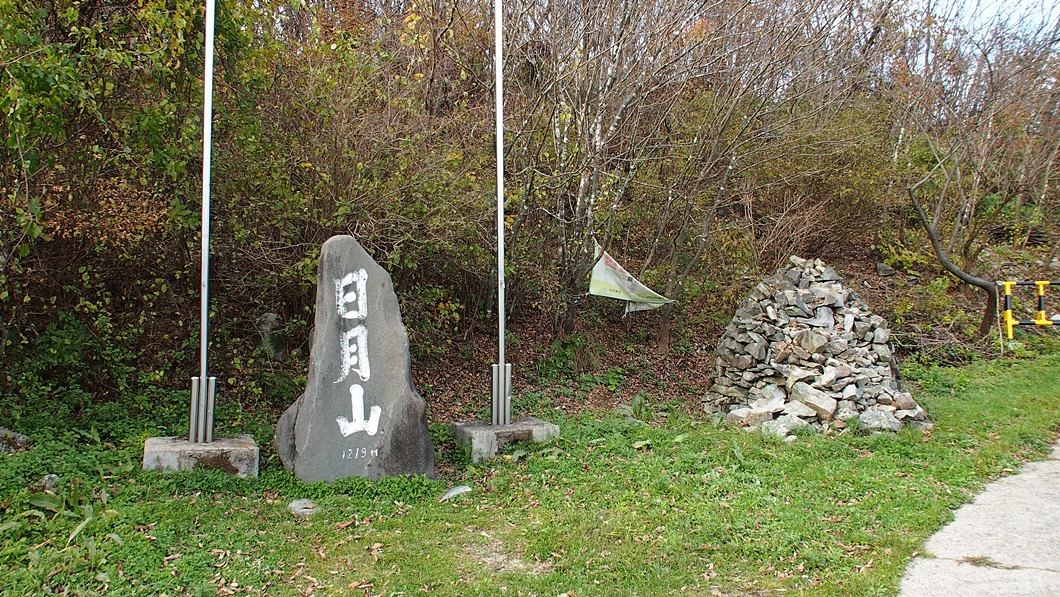 차에서 내려 두어 발자국 걸어가면 일월산 표석이 있답니다.