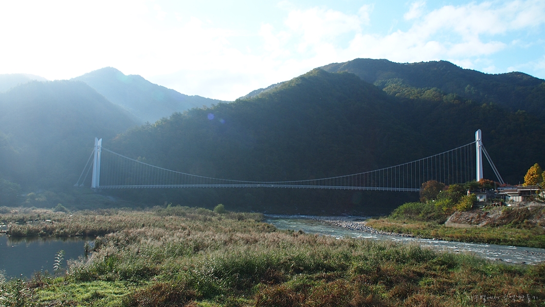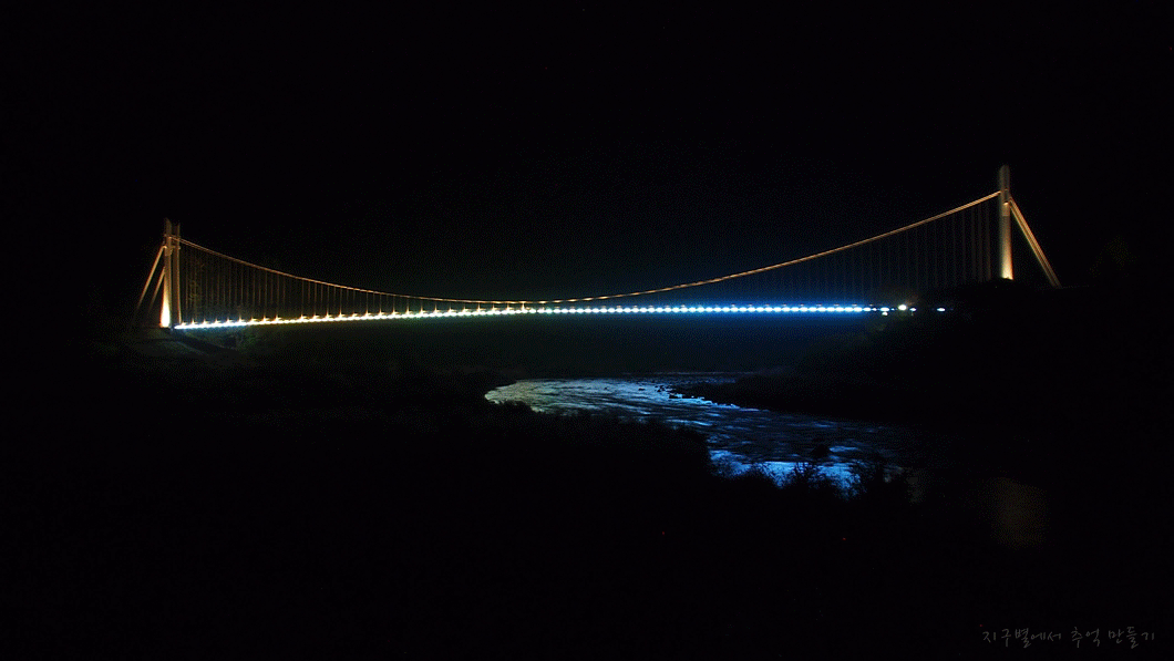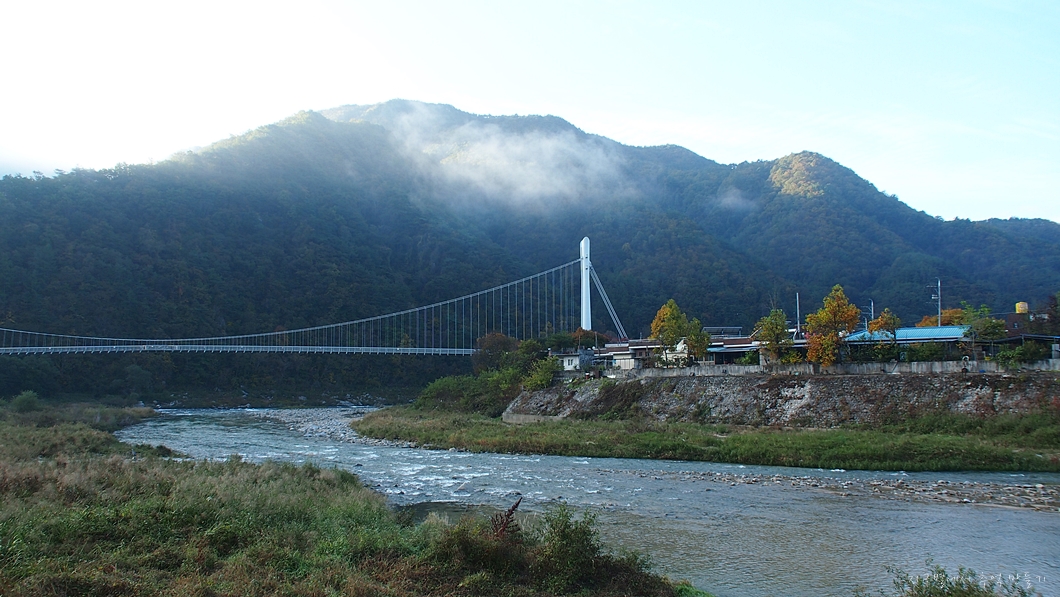 이곳에서 내려다보이는 차박지 옆의 이나리출렁다리.
