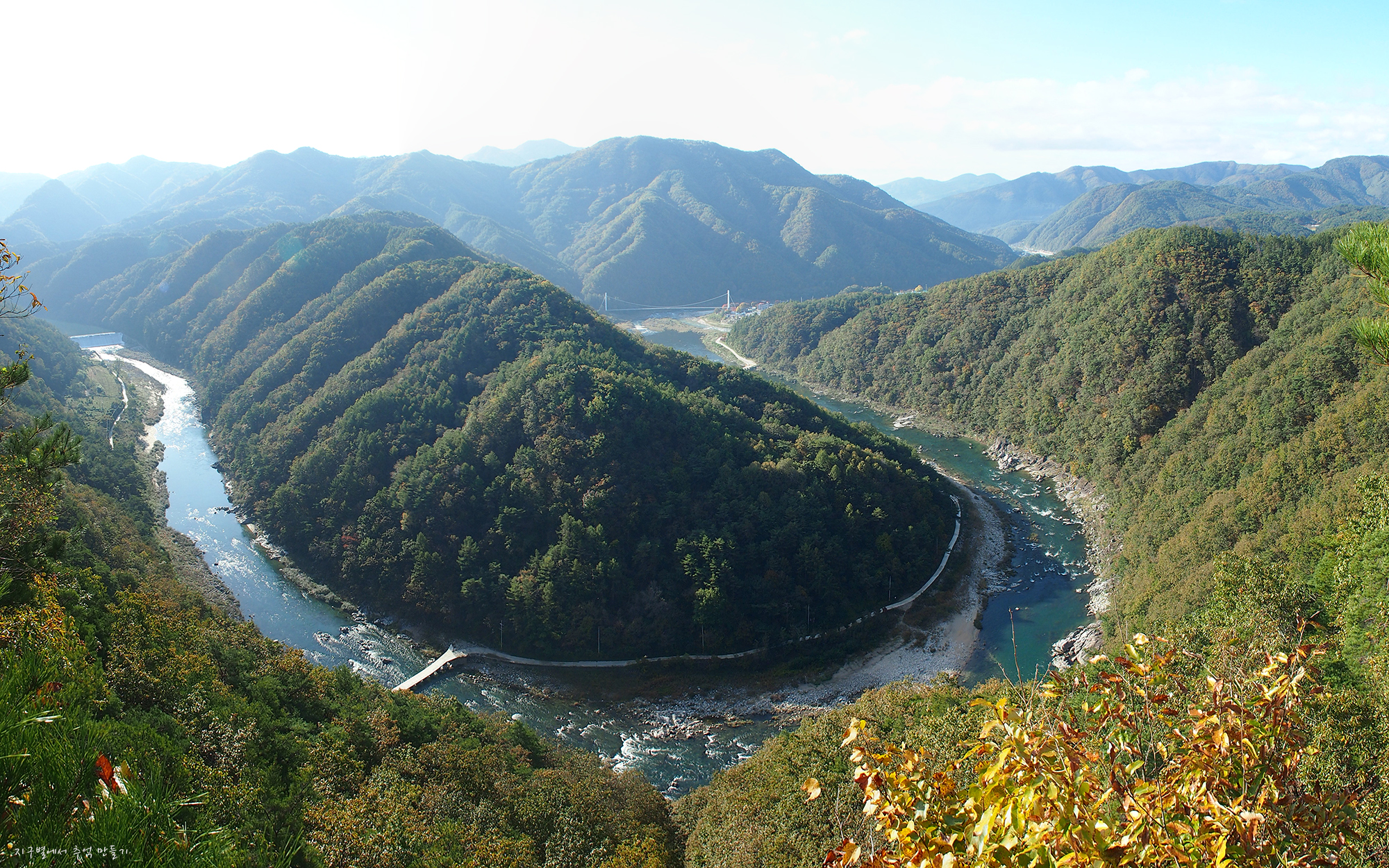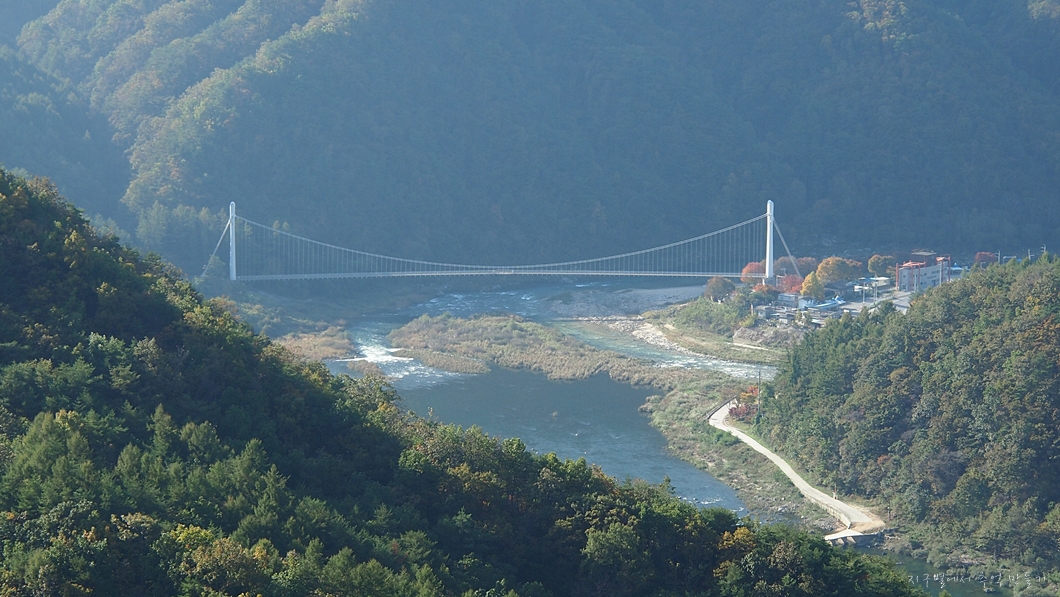 우측 뒤가 명호면 소재지이고 이나리출렁다리가 보이네요.