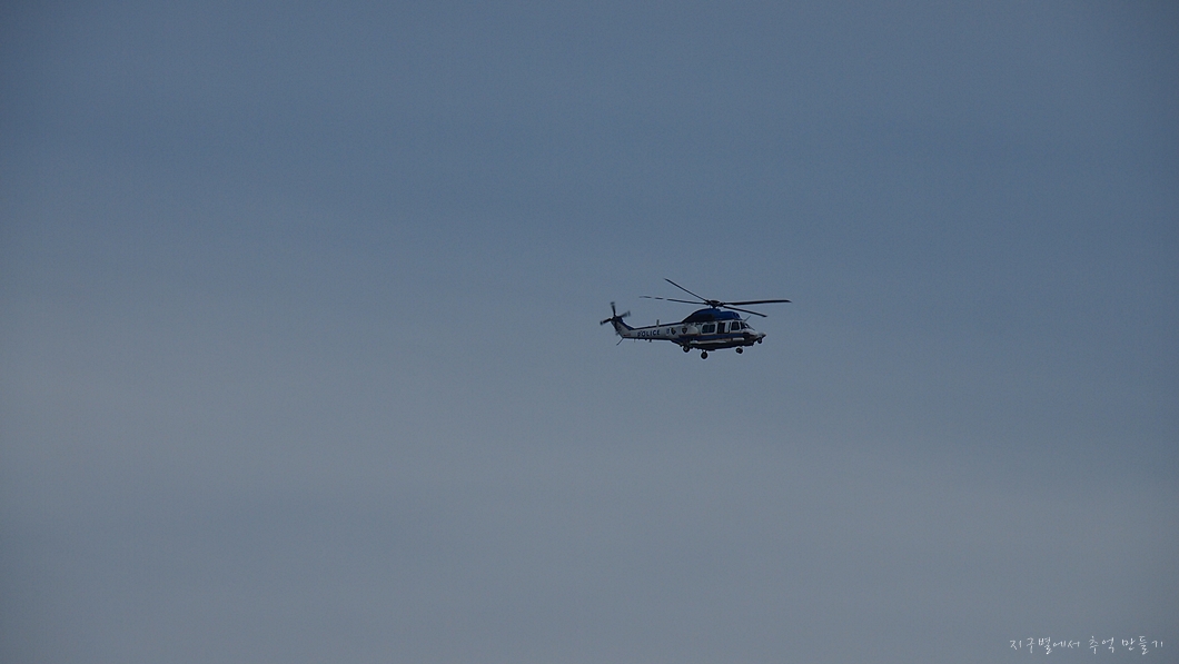 폴리스 헬리콥터가 날개도 돌지 않고 날아 가네유.