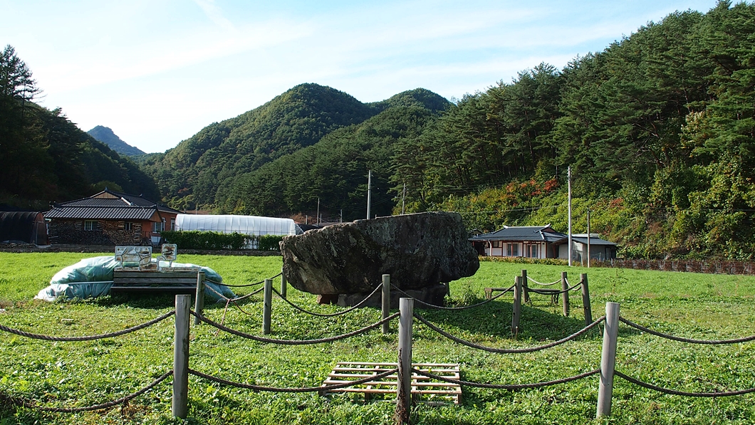 어느 시골길을 지나는데 도로 옆에 고인돌이 있네요.