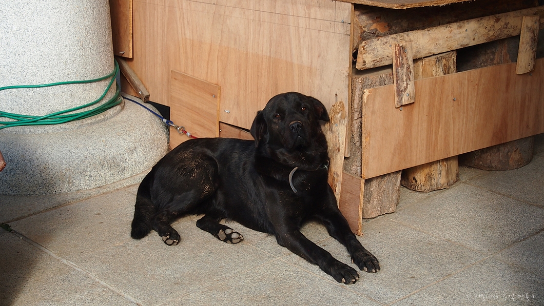 황씨부인당이 바로 아래라 풀어놓은 진도견이 죽는다고 짖어 댑니다.