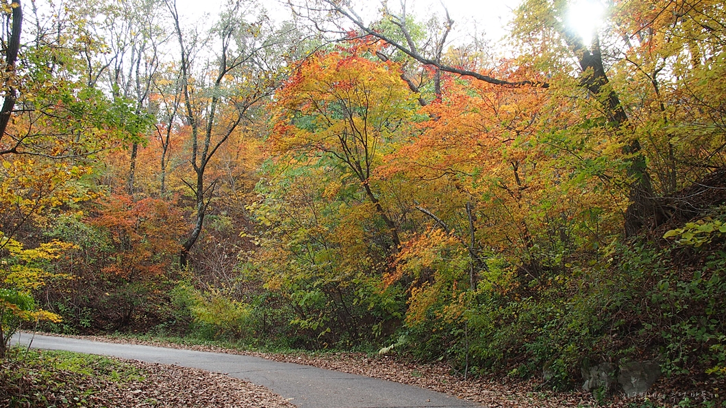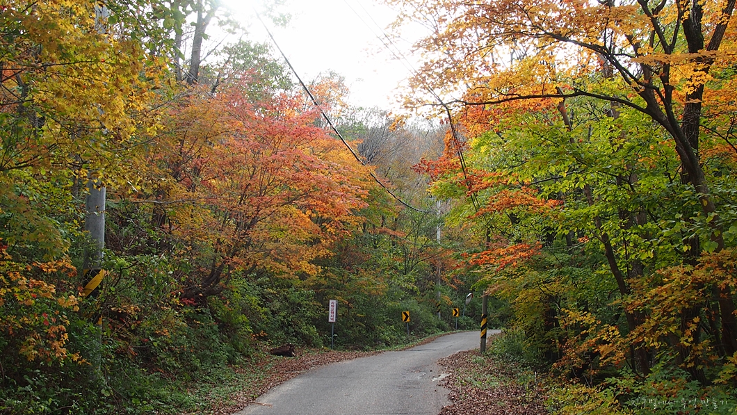 도로를 따라 달리는 길에는 온통 가을입니다.