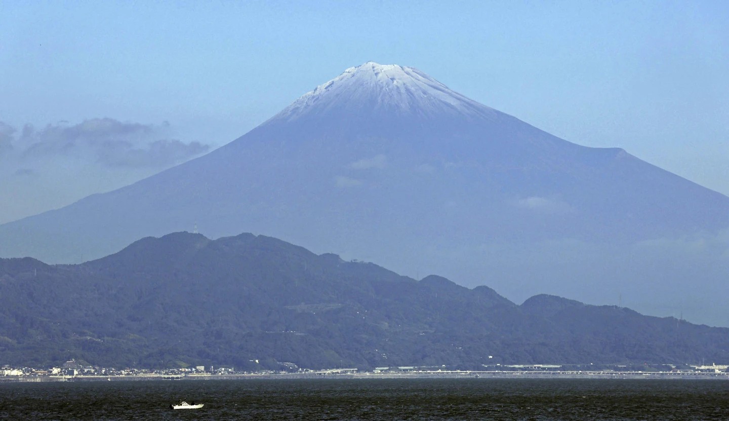 올해 첫눈이 내린 후지산.