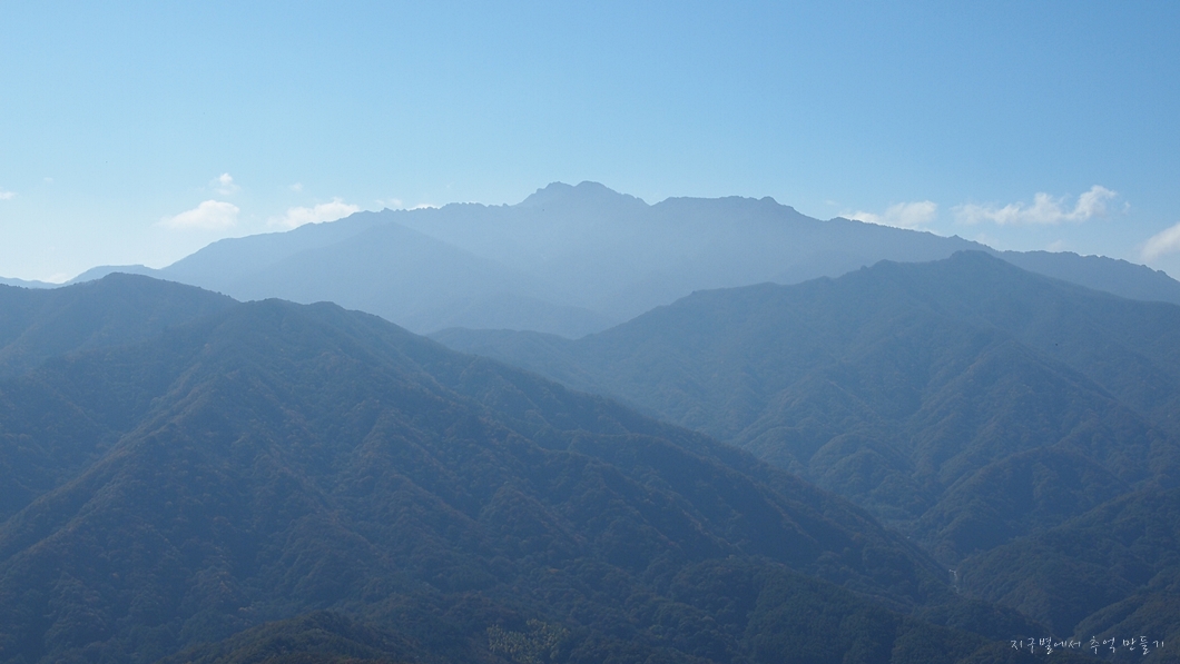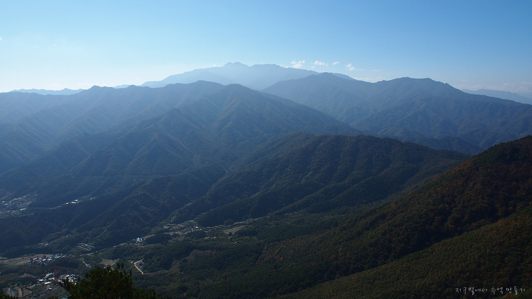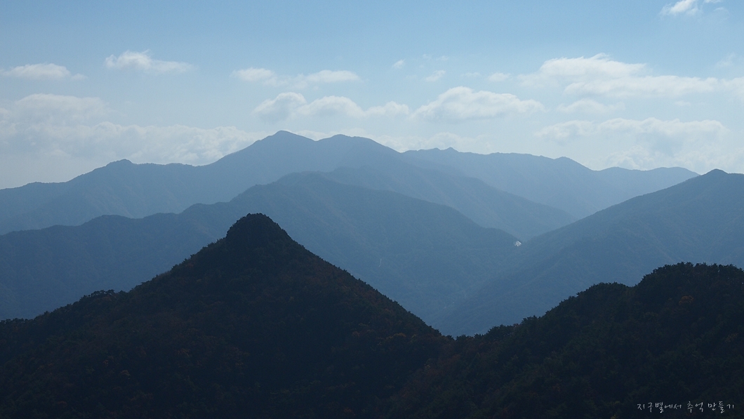 필봉산 뒤로 밤머리재 웅석봉 능선이 멀리 보이네요.