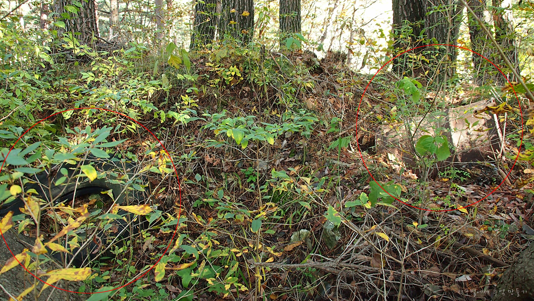 아마도 짐작건대 이곳에 등산로를 내면서 중장비가 들어와서 작업 끝나고 버리고 간 듯.