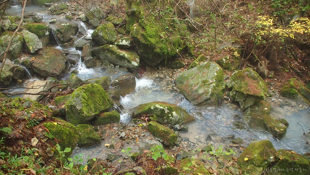 전날 비가 내렸는데 물빛이 석회질이 있는 것처럼 뿌옇습니다.