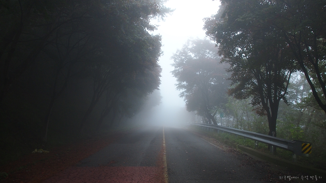 밤머리재 오르는 길에서도 안개 가득이구요.