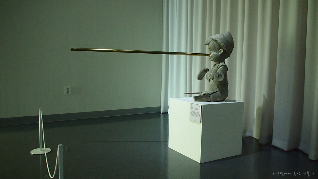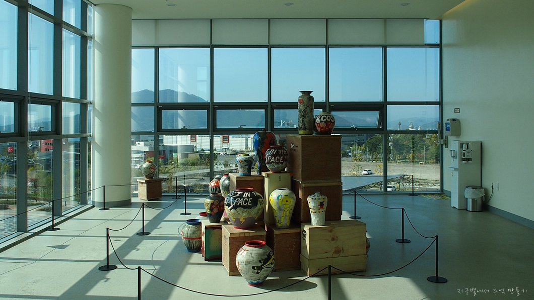 바깥이 보이는 복도에서 전시되고 있는 이 작품은 오제성이란 젊은 작가(1987~)가 만든 '염원의 항아리'라는 작품.