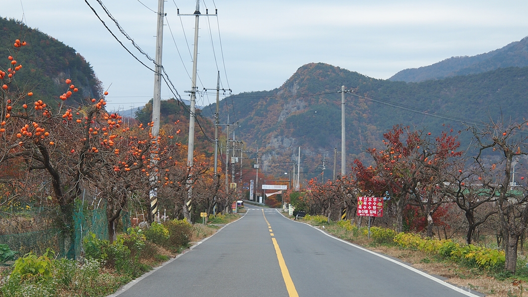 가로수가 감나무로 된 곳은 이곳 청도와 또 한 곳 영동이 있답니다.