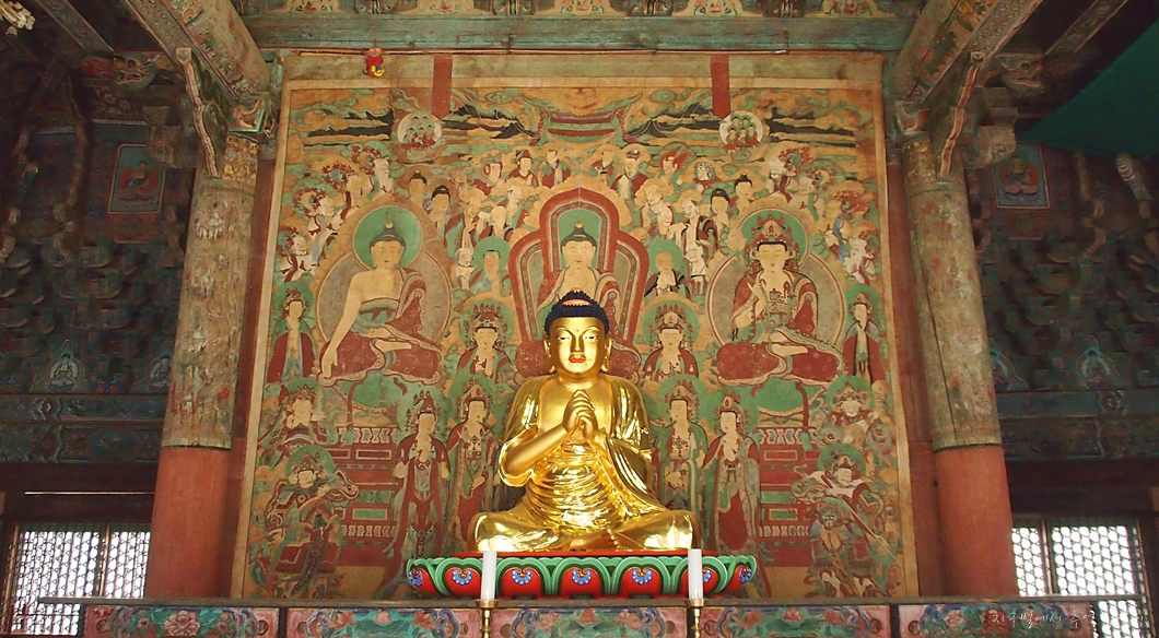 웃기는 건 국가 보물로 지정이 된 대웅전이 멀쩡하게 있는데 그 옆에다 크기가 두 배나 되는 대웅전을 신식으로 하나 더 지어서 현재 대웅전이 2개가 되어 있답니다.