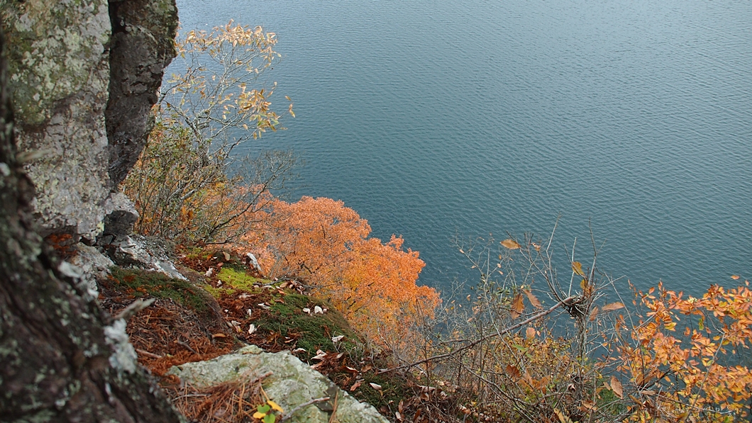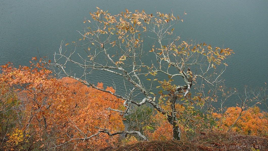 능선으로 된 바위벽이 호수 안으로 기다랗게 연결된 곳입니다.