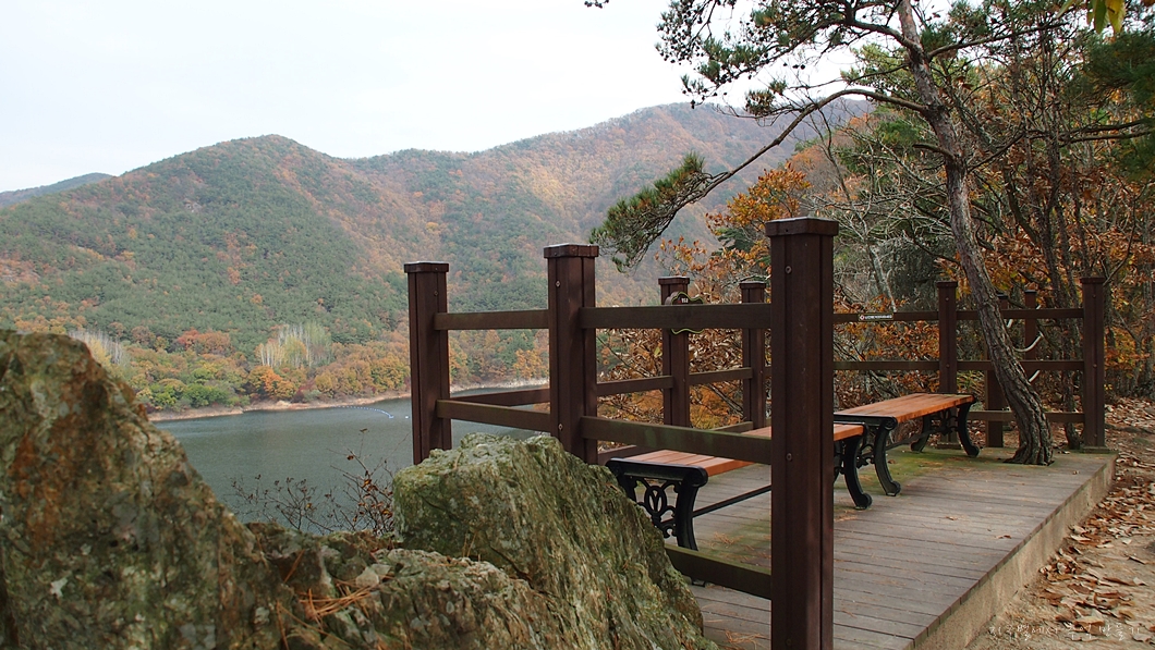 되돌아오면서 어느 쉼터에서 조망되는 운문호 풍경