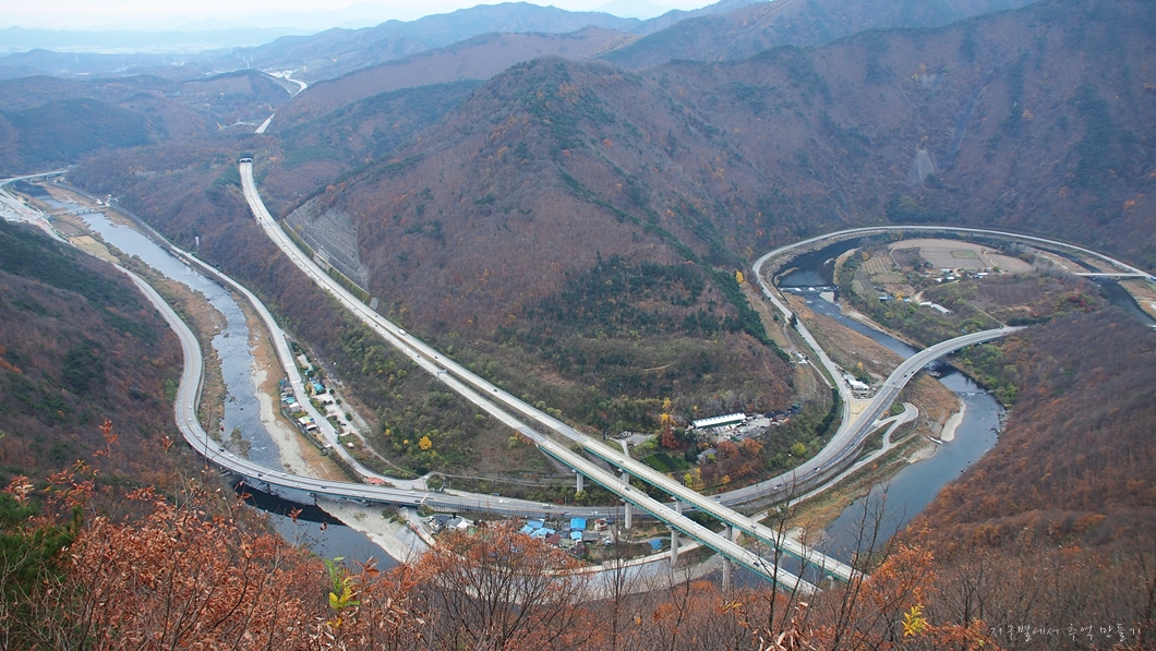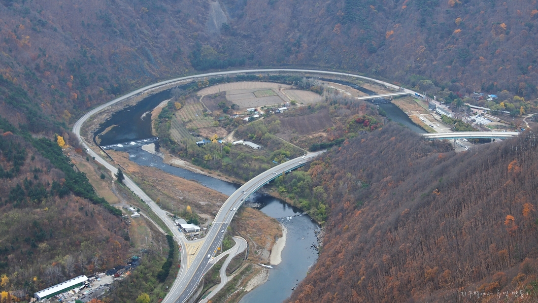 강과 물과 그리고 길이 만들어내는 세 개의 태극문양.