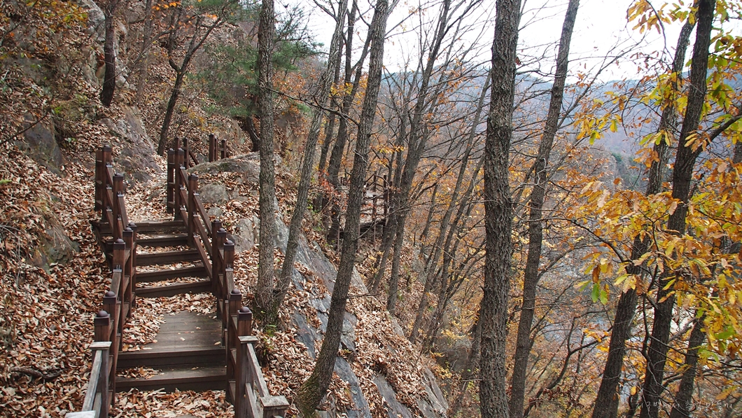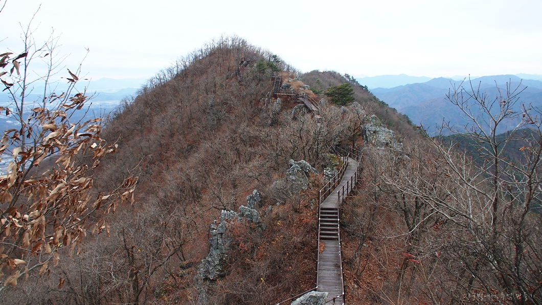 정상까지는 바위 절벽들로 되어 있는데 안전한 데크길을 만들어 두었네요.