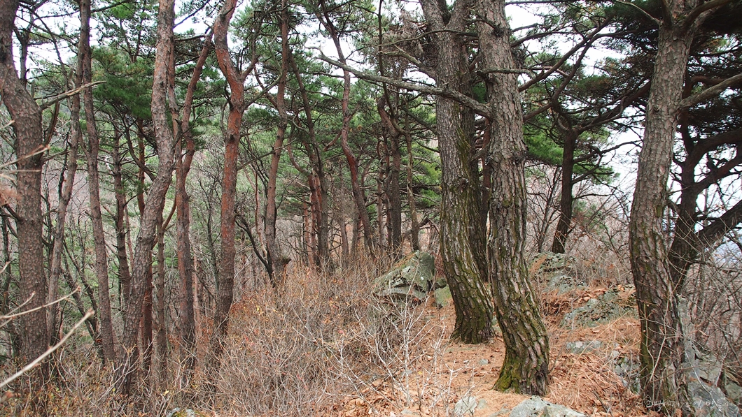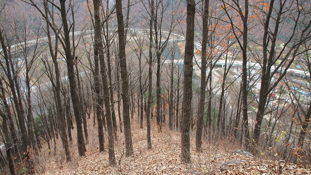 거의 참나무 숲인데 중간 중간 소나무 숲이 있어 피톤치드 흡수를 합니다.
