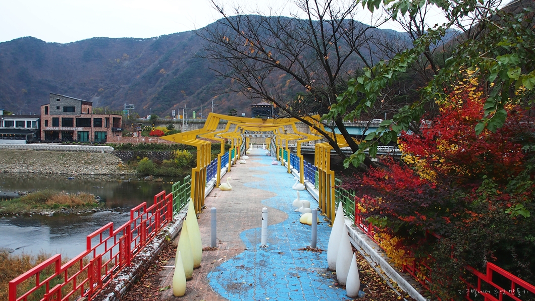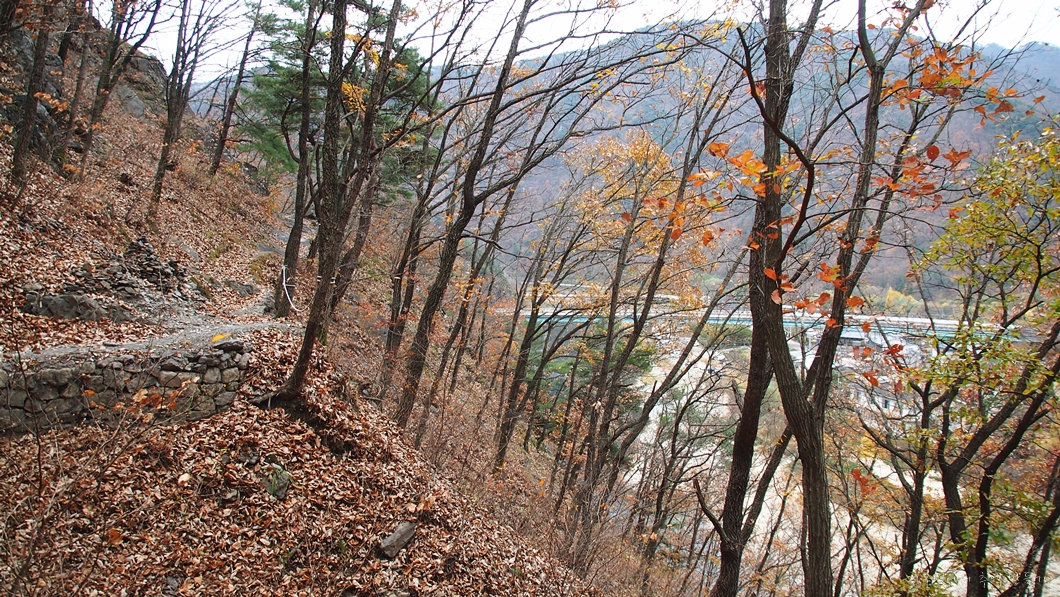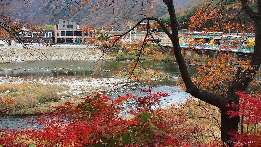 강변따라 이어지는 옛 도로가 운치 백단입니다.