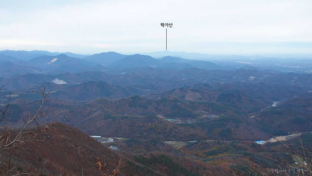 정남쪽으로 멀리 솟아있는 갑장산이 보입니다.