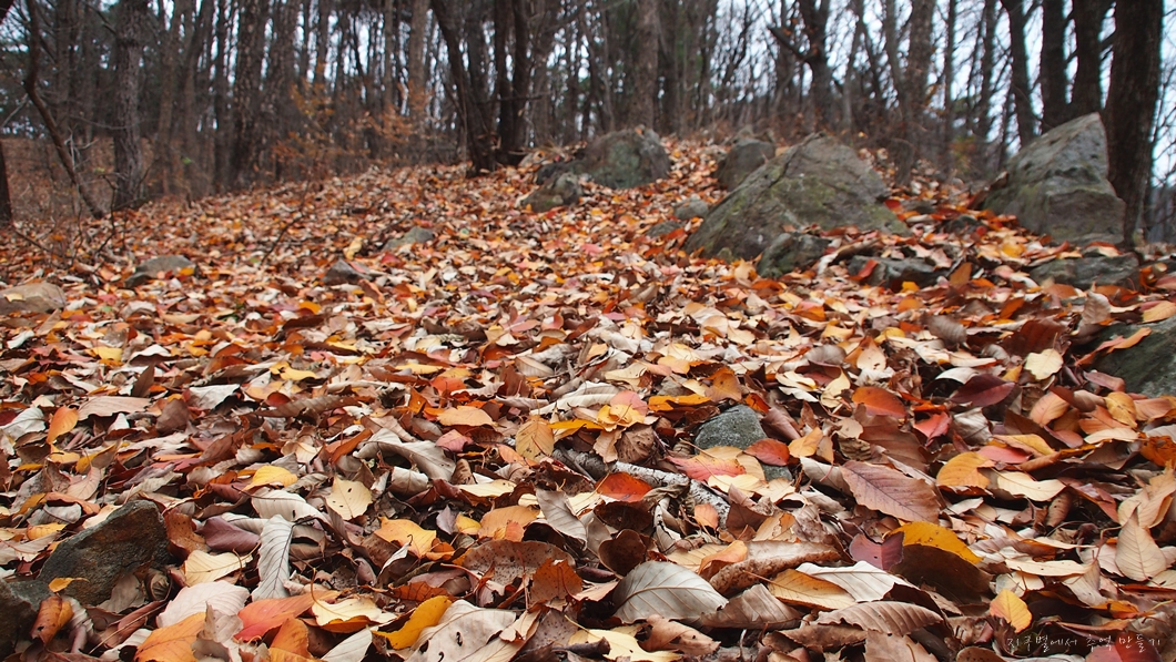 낙엽이 엄청나게 많아 하산할때 미끄러워 애 먹었답니다.