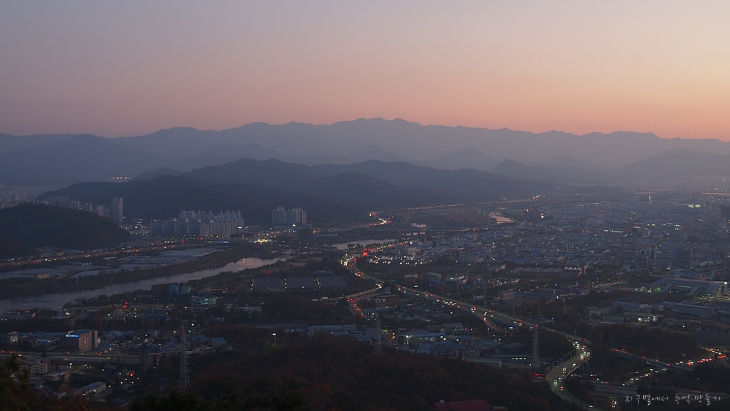 우측 위에 별처럼 빛나는 불빛이 앞산전망대.