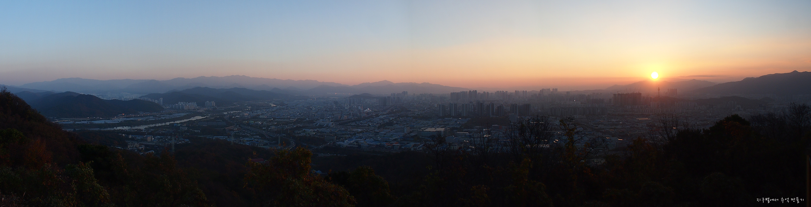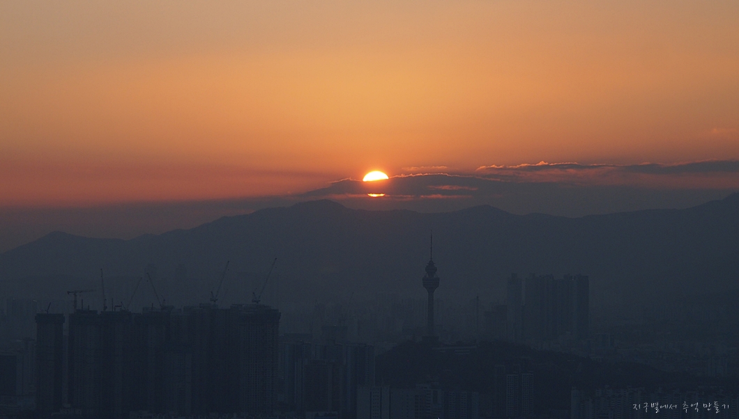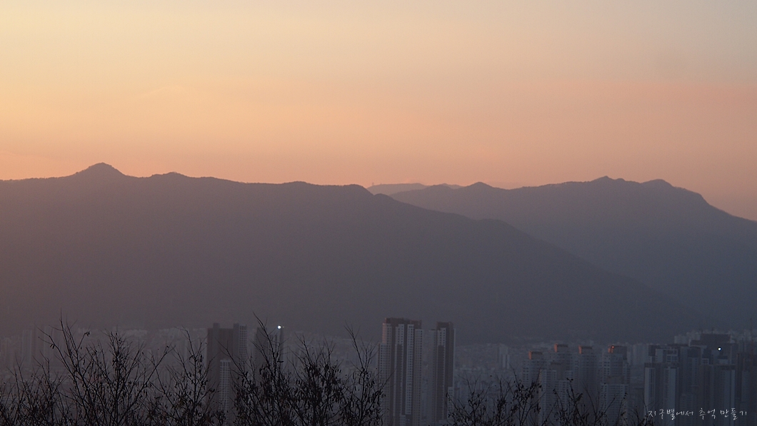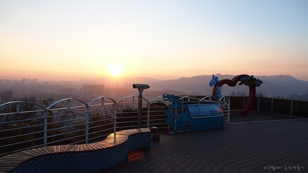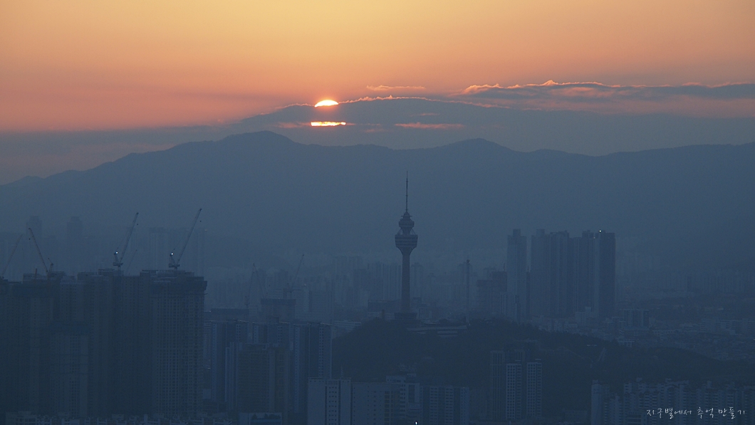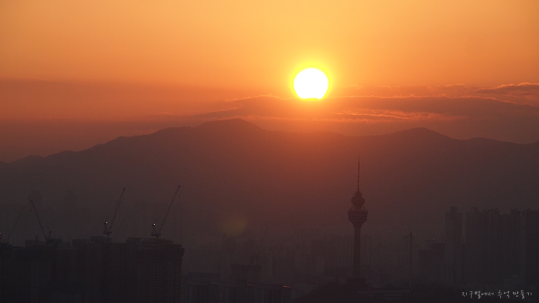 해가 수성구의 대덕산과 감태봉 사이에서 떠 오릅니다.
