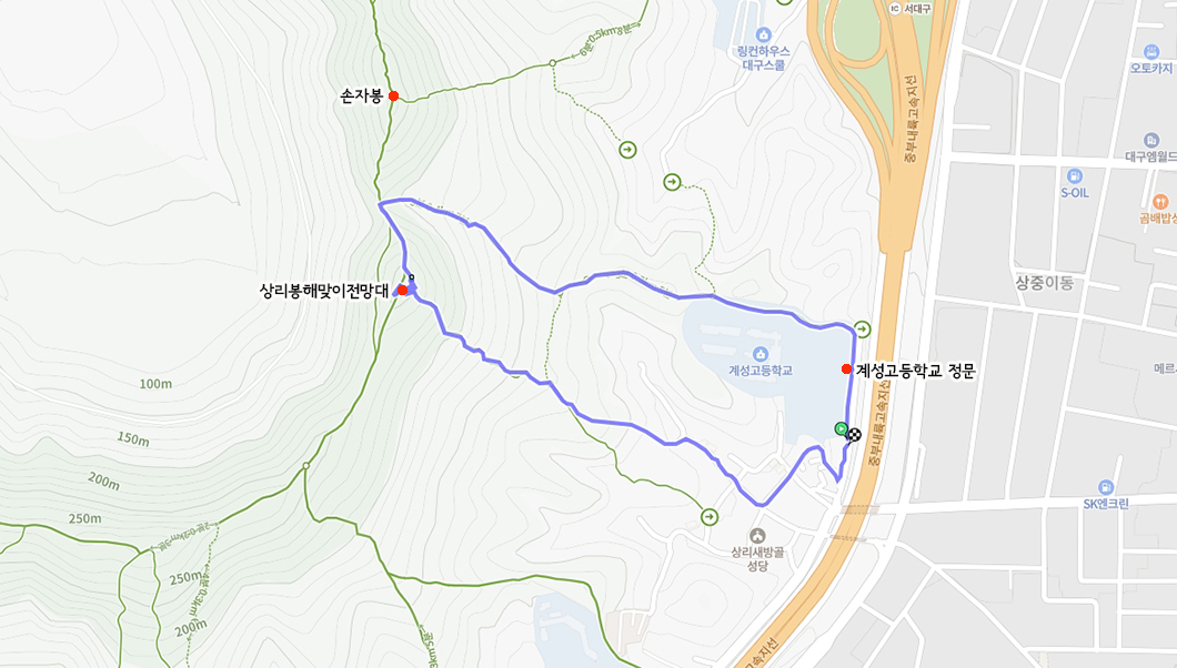 산행 코스 : 계성고 정문 - 상리봉전망대 - 계성고(원점회귀)
