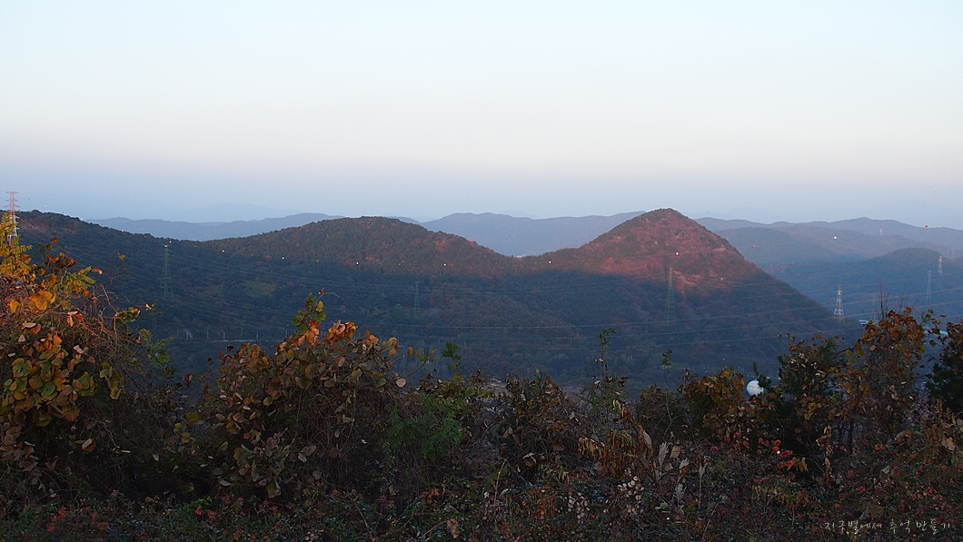 우측이 청룡산인데 두 곳 사이로 희미하게 KT기지국이 있는 최정산이 보입니다.
