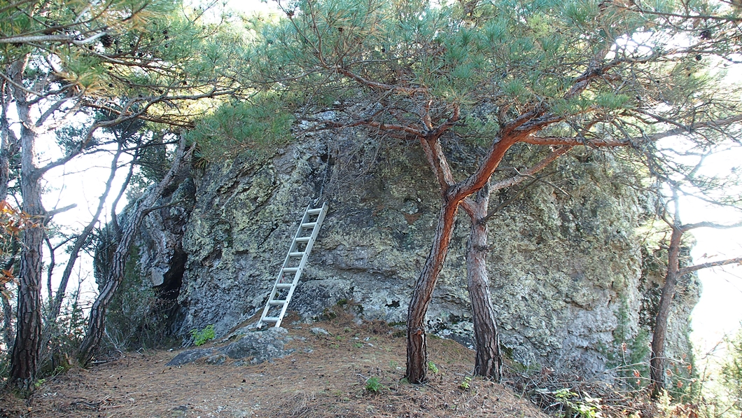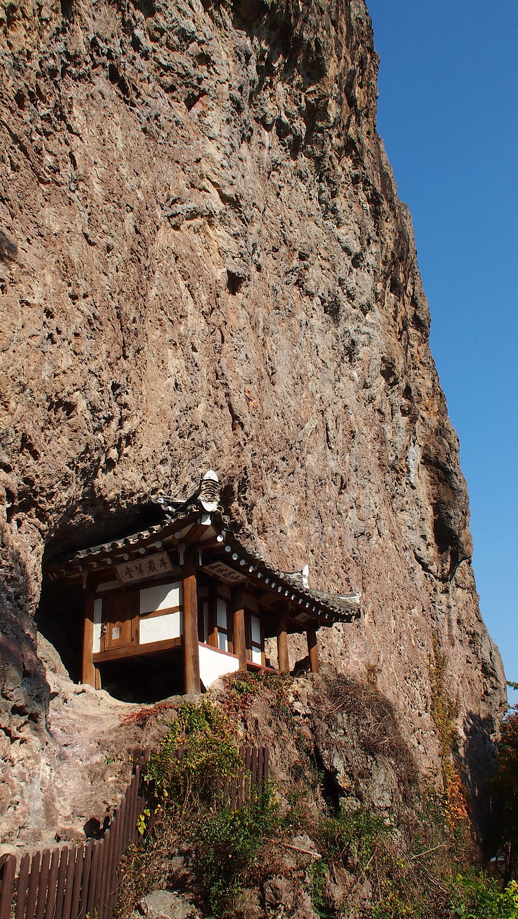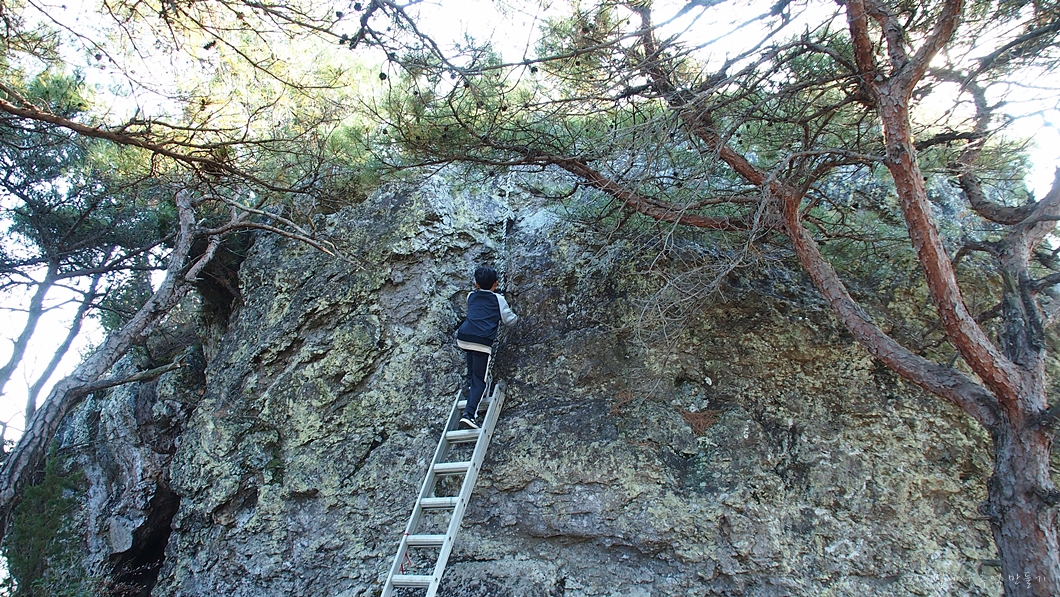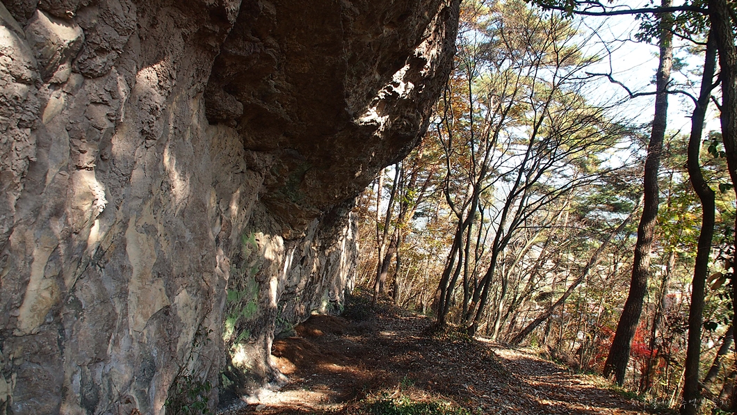 바위는 거의 직벽인데 아래쪽은 약간 들어가 있네요.