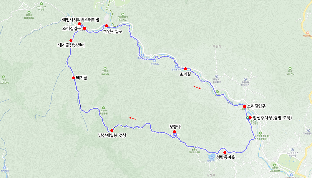 산행 코스 : 황산주차장 - 청량사 - 남산제일봉 - 돼지골 - 소리길 - 주차장(원점회귀)