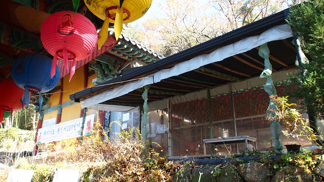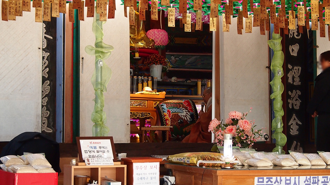 대웅전 안에 한번 들어가서 구경을 하려고 했는데 뭔 개인예불 행사 중이네요.