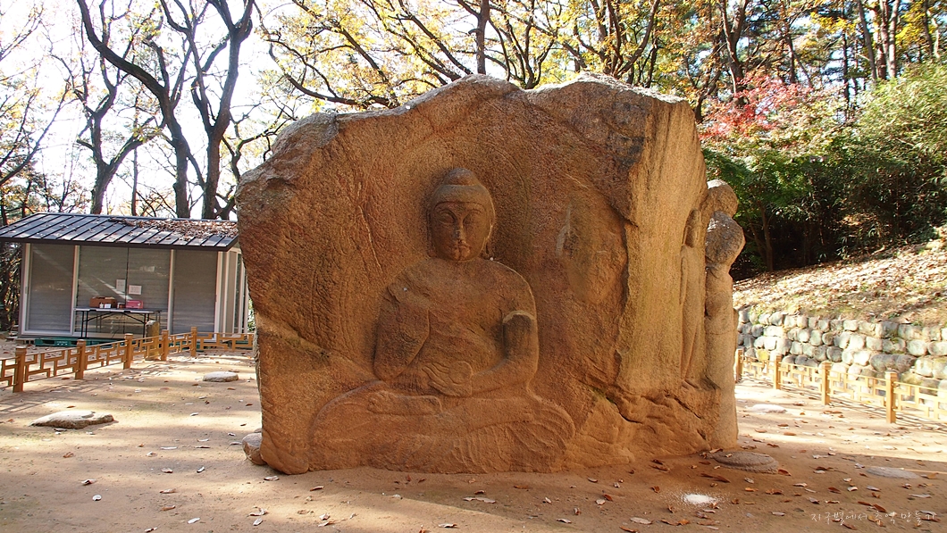현재 사진에 보이는 좌측에 부처님이 한 분 더 서 계셨구요.