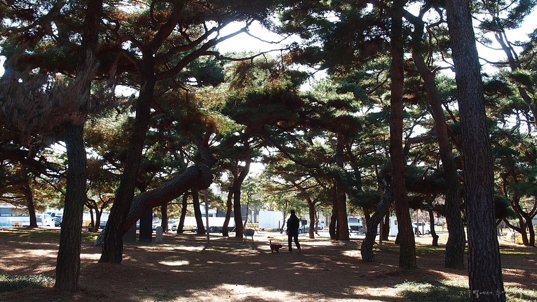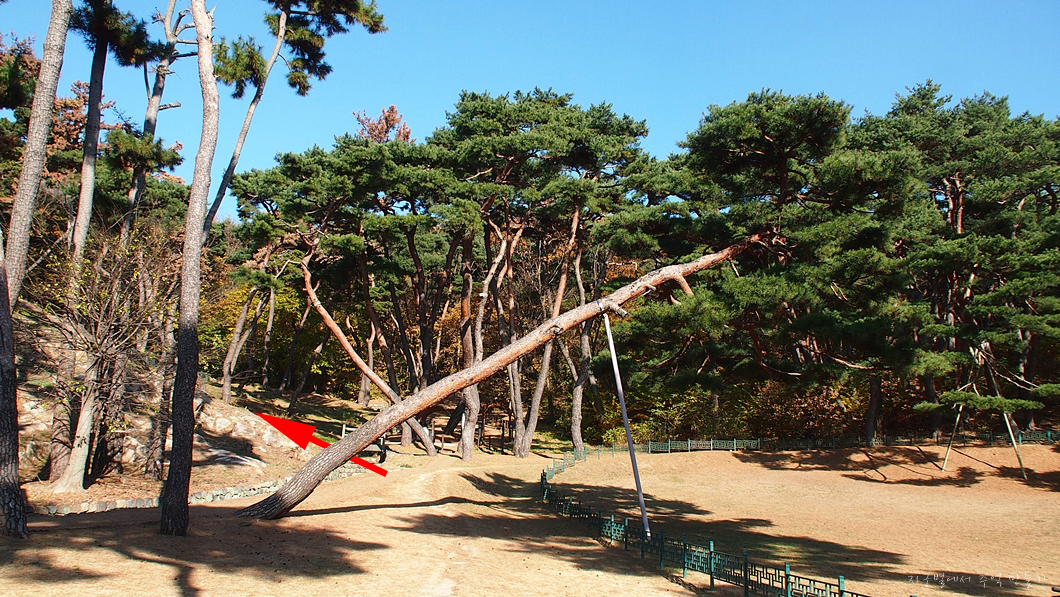 깊숙하게 고개를 숙인 소나무 한그루가 인사를 하고 있네요.