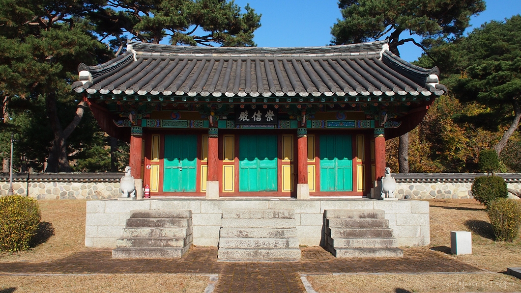 입구 홍살문에서 영녕문, 경엄문을 지나면 맨 안쪽에 숭신전이 있습니다.