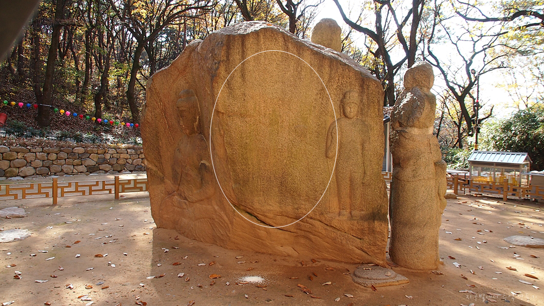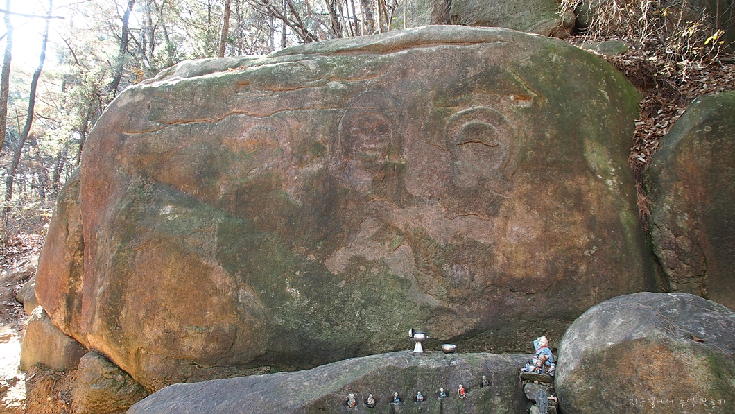 조각으로 보이는 미륵불 외에 좌측에 선각으로 조성된 관음보살이 있다고 하여 눈에 온 신경을 모아 보는데도..