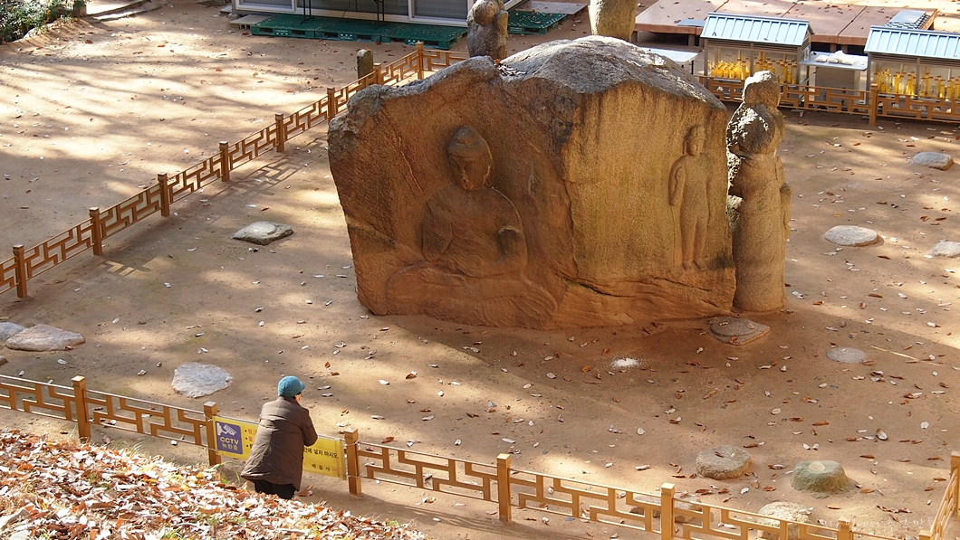가운데 아미타부처님을 모시고 양쪽에 협시불을 바위와 별개로 조각을 하여 세워 두었네요.
