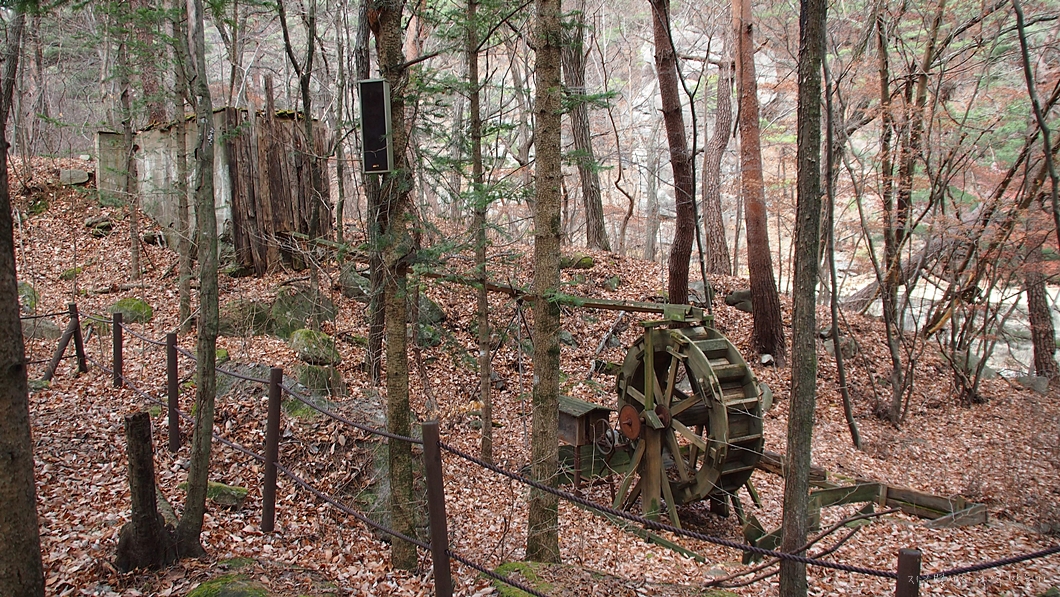 해인사 소리길에 있는 옛 동네의 물레방아 발전 시설.
