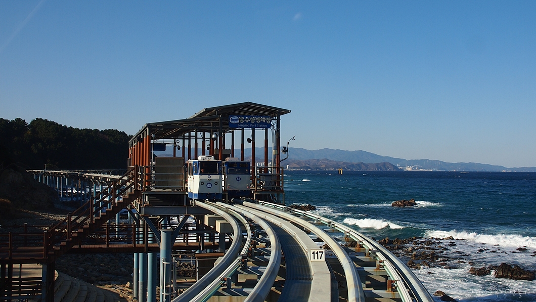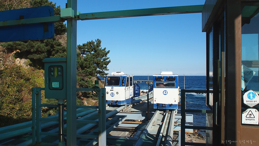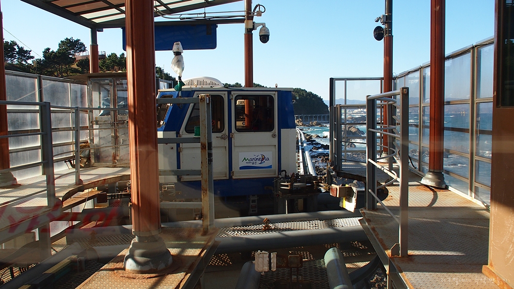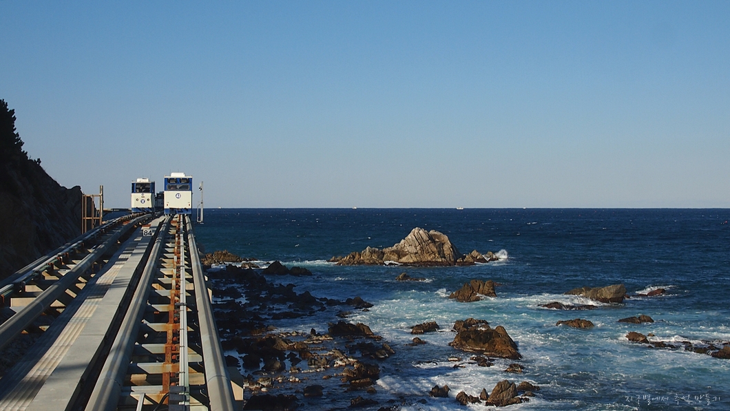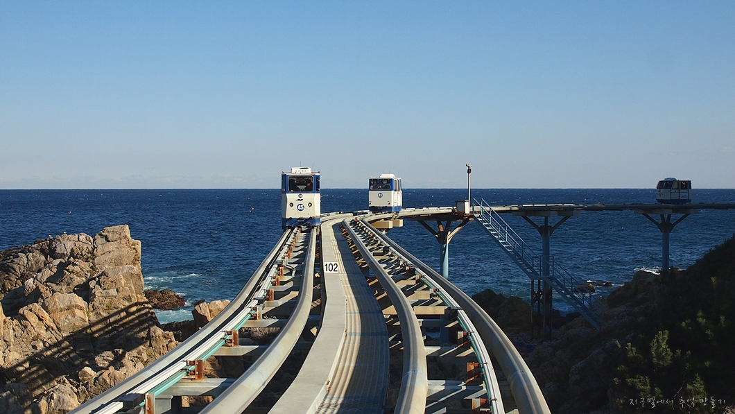 동해 청정바다를 조망하며 바닷가에 설치된 모노레일인데 대략 시속 5km의 속도로 갔다가 되돌아오는데 35분 정도 소요되네요.