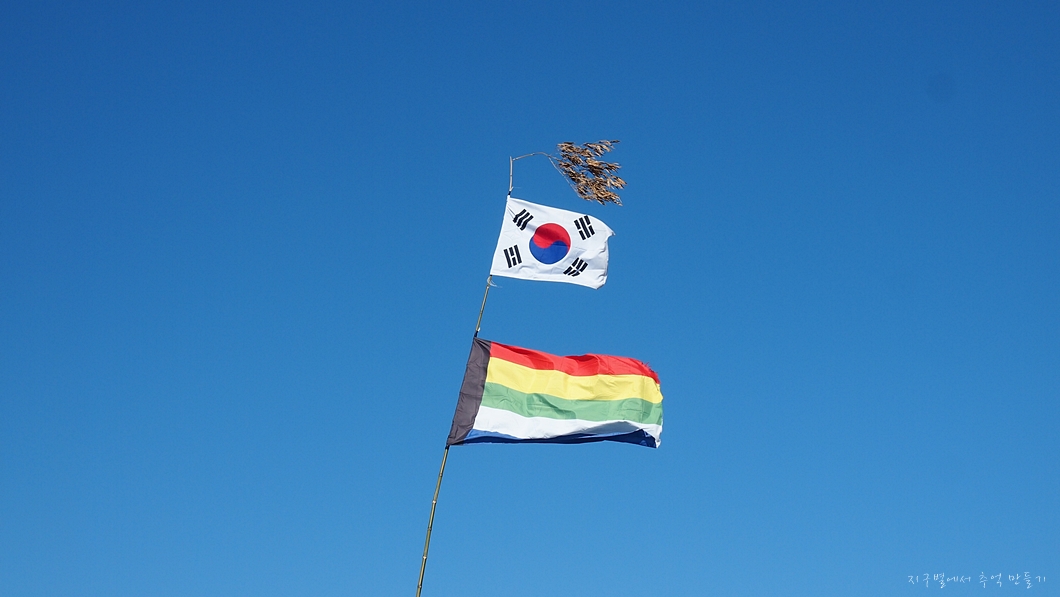 부둣가에는 이런 깃발이 여러 개 세워져 있는데 태극기 아래 표시는 만선을 의미한다고 합니다.