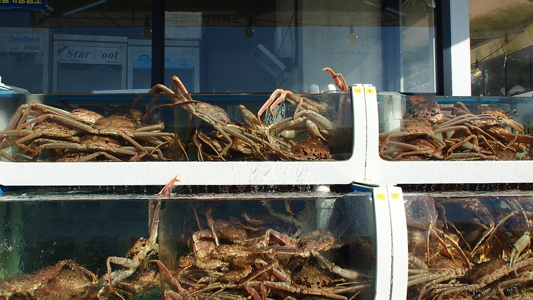 아직 국내산 살이 찬 대게가 잡히는 시기가 아니라 약간은 덜 붐비지만 12월 중순 이후로는 동해안의 항구들은 대게 찌는 냄새로 가득하지요.