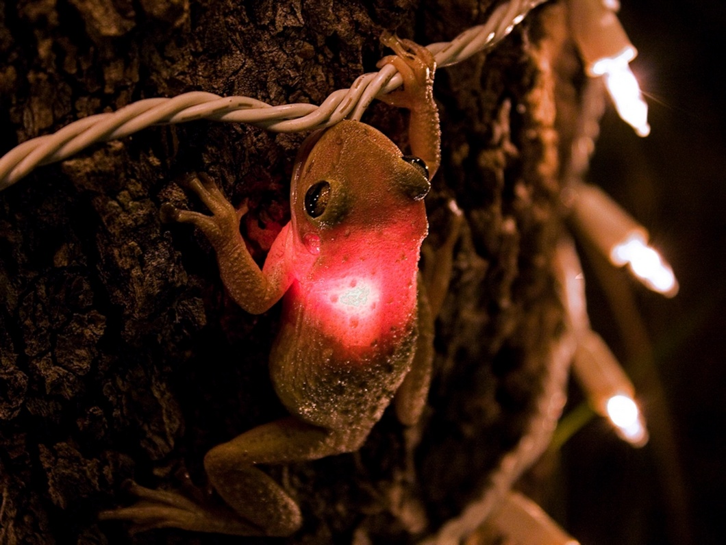 처음에는 개구리가 전구 위에 앉아 있는 줄 알았는데 자세히 보니 개구리가 전구를 삼킨 장면이었답니다.