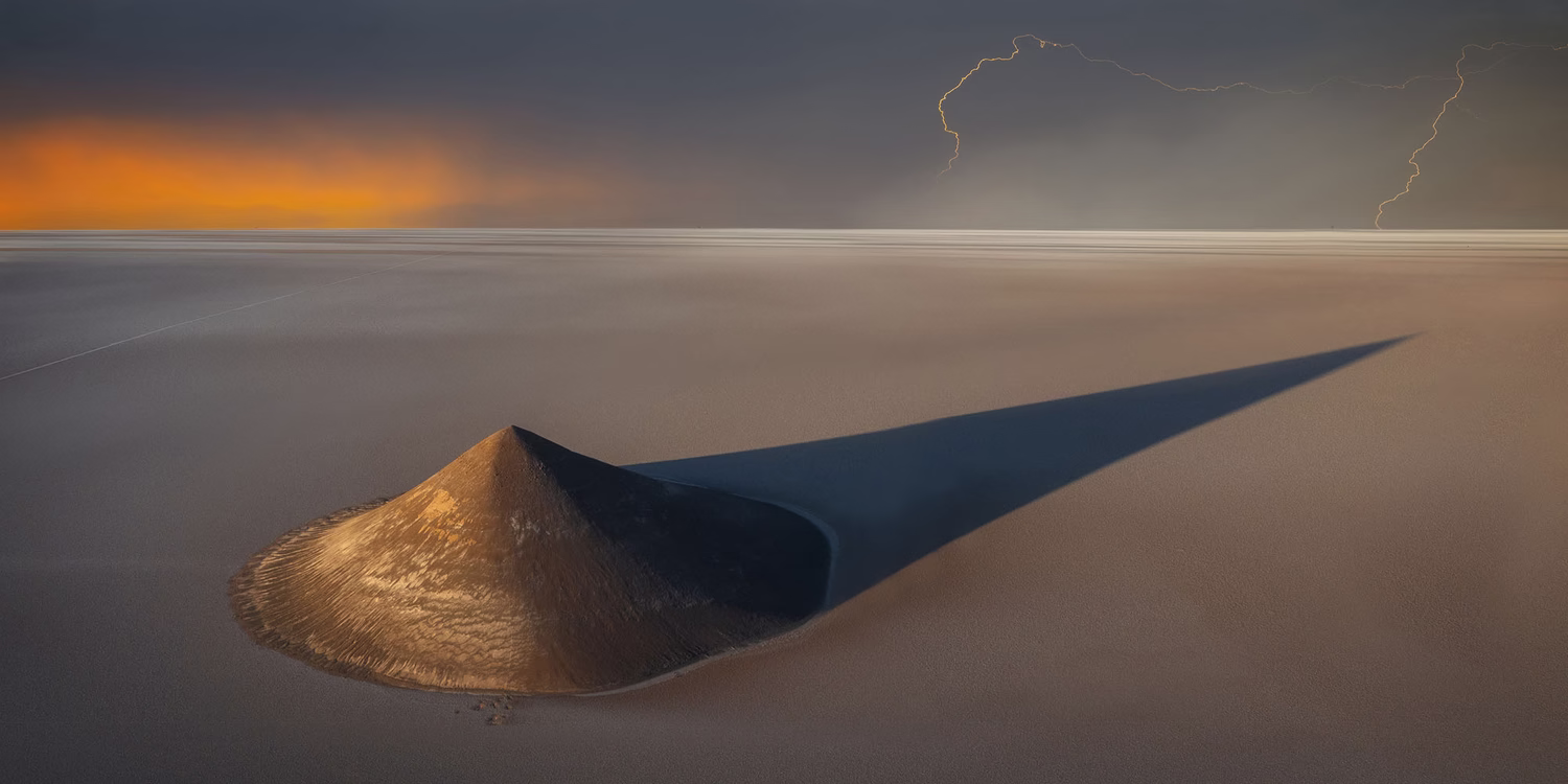 배경은 중국 구이린의 Divine이란 산으로서 일출을 찍기 위해 올랐는데 갑자기 뇌우가 몰아쳐 그걸 찍었다고 하네요.