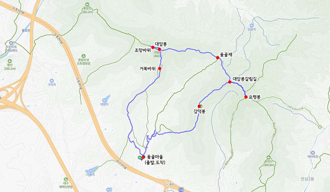 산행 코스 : 옻골마을 - 감덕봉 - 대암봉삼거리 - 요령봉 - 삼거리로 되돌아와서 - 옻골재 - 대암봉 - 옻골마을(원점회귀)