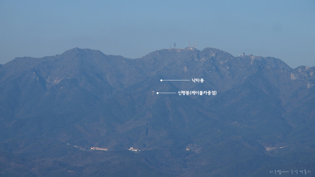 그 앞으로 케이블카상부 종점인 신령봉과 그 뒤 낙타봉이 보입니다.