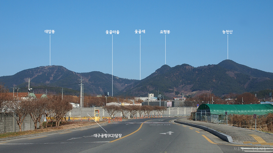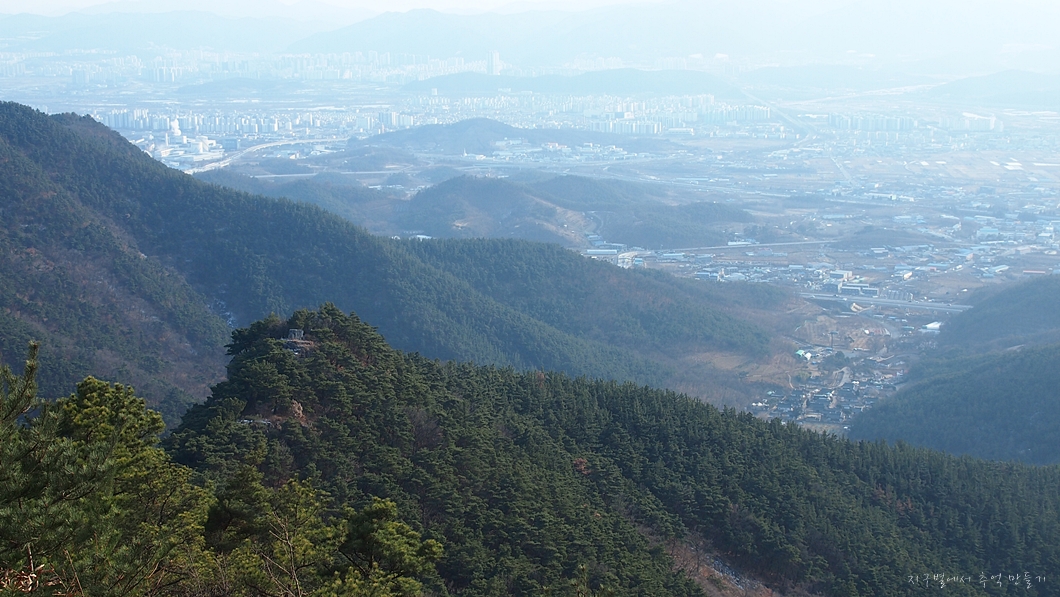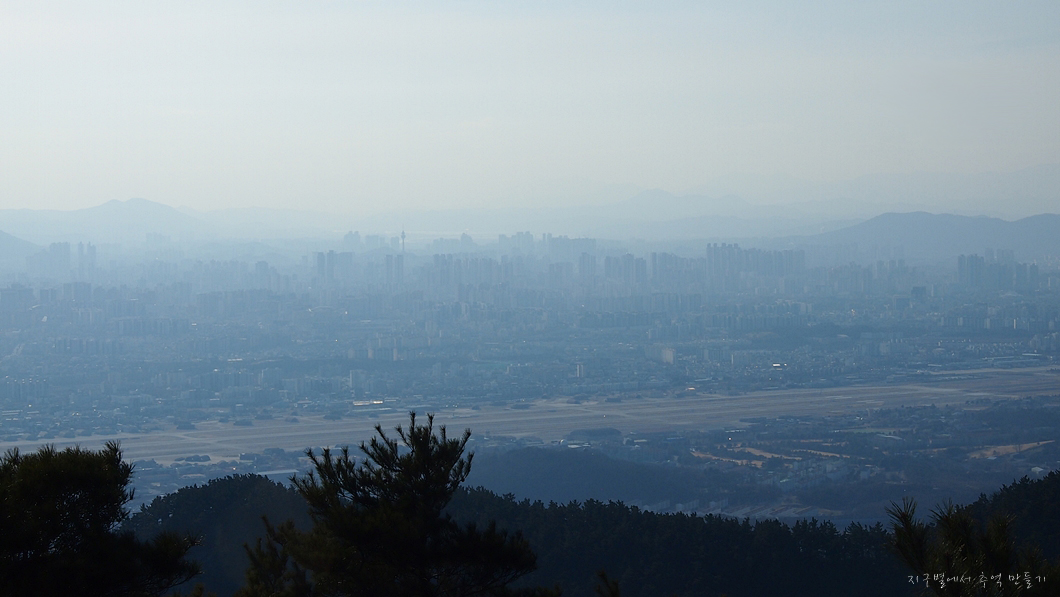 전방으로 먼저 보이는 곳이 대구 시가지 방향.